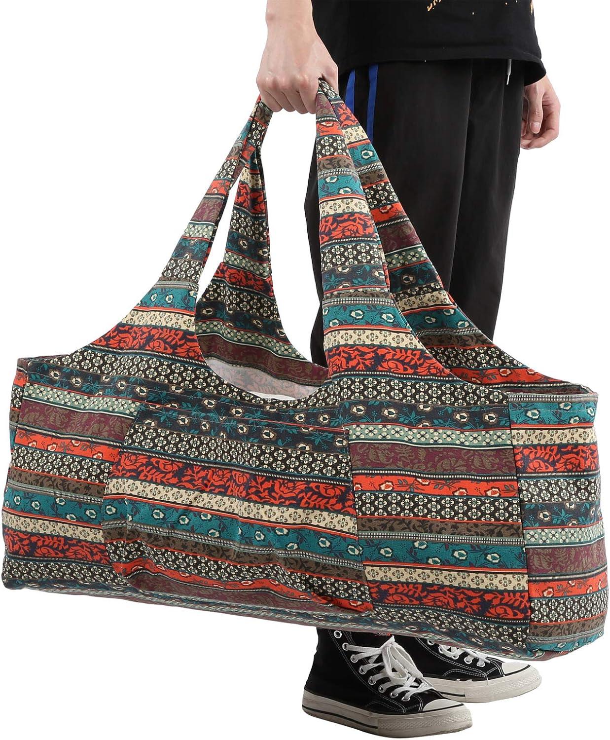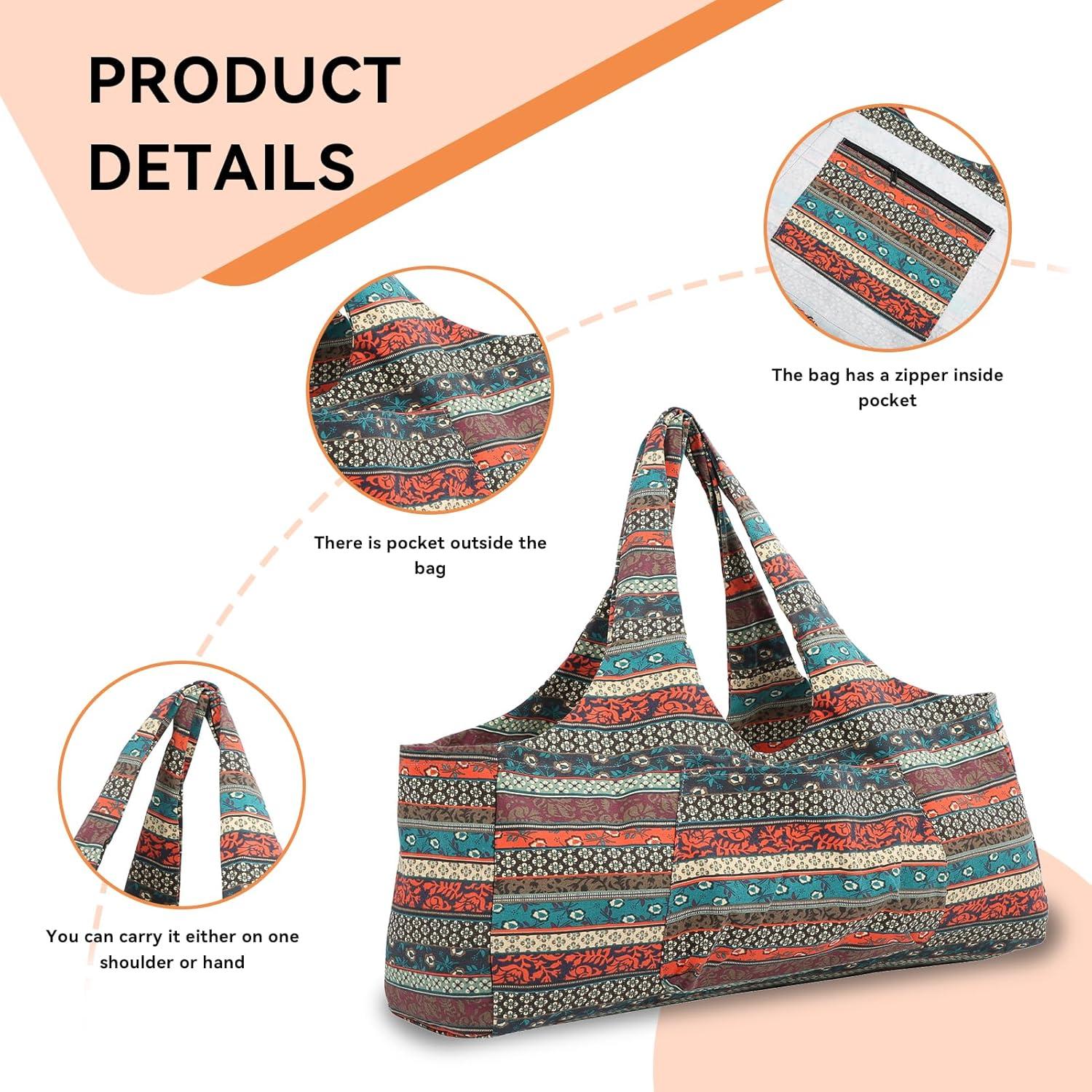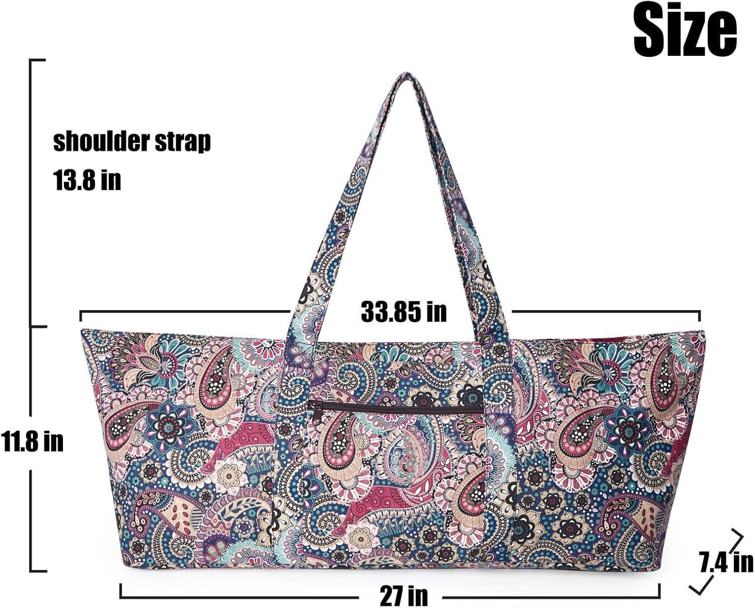 Large Yoga Mat Bag, Patterned Canvas Yoga Mat Bag Large Tote Sling Carrier with Pockets Travel Gym Duffle for Pilates Office Beach Workout