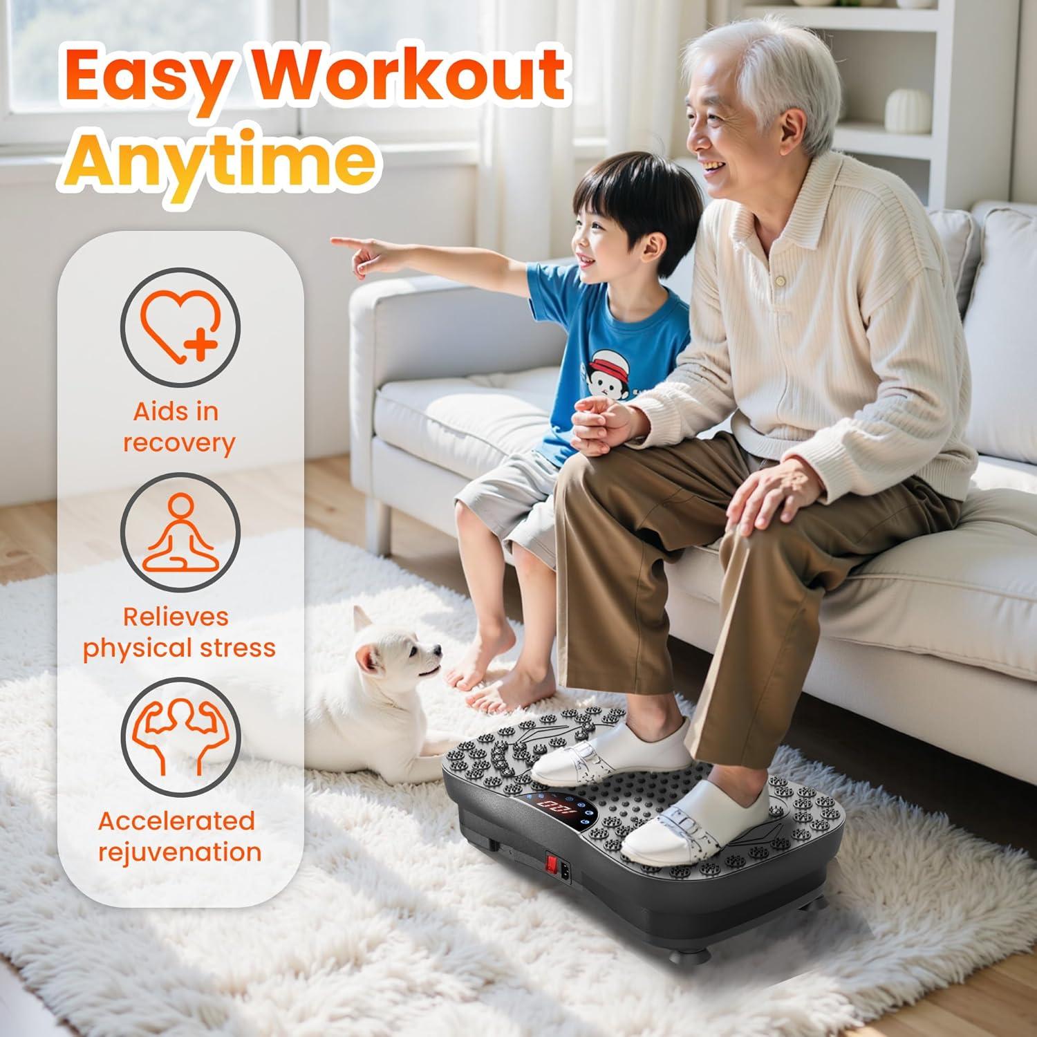 ✅RICH FUNCTIONAL & HIGH EFFICIENT& REMOTE CONTROL: Adjustable vibration speed (1 to 120), with 2 resistance workout bands, can exercise upper body and lower body at the same time. Offering variety of exercise modes, allow you to try different vibration exercises, With this workout machine, you can have your routine exercise done in only 10 minutes everyday. What you’ll get is a better shape and enhanced metabolism, increased bone mineral density, relieve and reduce stress levels.