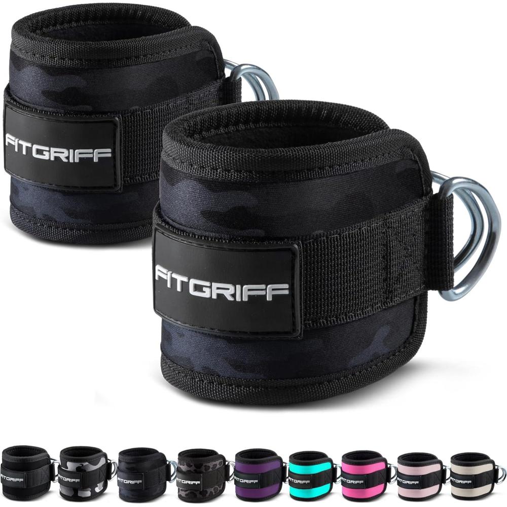 Fitgriff® Ankle Straps V1 for Cable Machine (2 Pieces) – Gym Workout Equipment – Leg Pulley Attachment, Kickback Straps(Camo-Black)