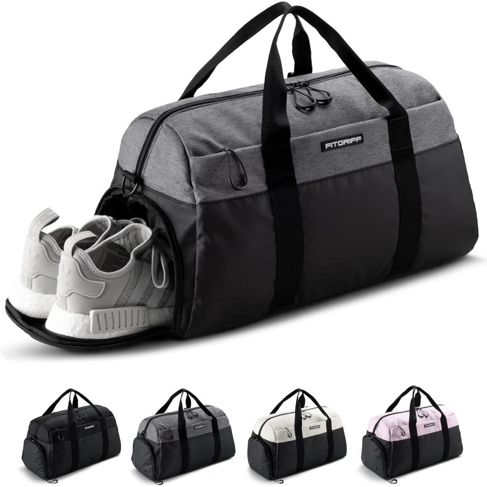 Fitgriff® Gym Bag V2 for Men and Women with Shoe & Wet Compartment – Duffle Bag for Travel, Sports, Fitness and Workout(Black / Grey)
