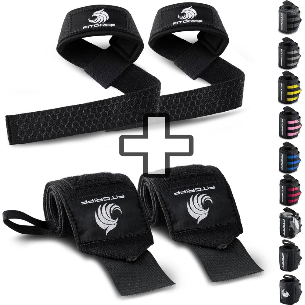 Fitgriff® Lifting Straps & Wrist Wraps (Bundle) Superior Support for Weightlifting & Gym Workouts – for Men and Women(Black Original Silicone Straps)