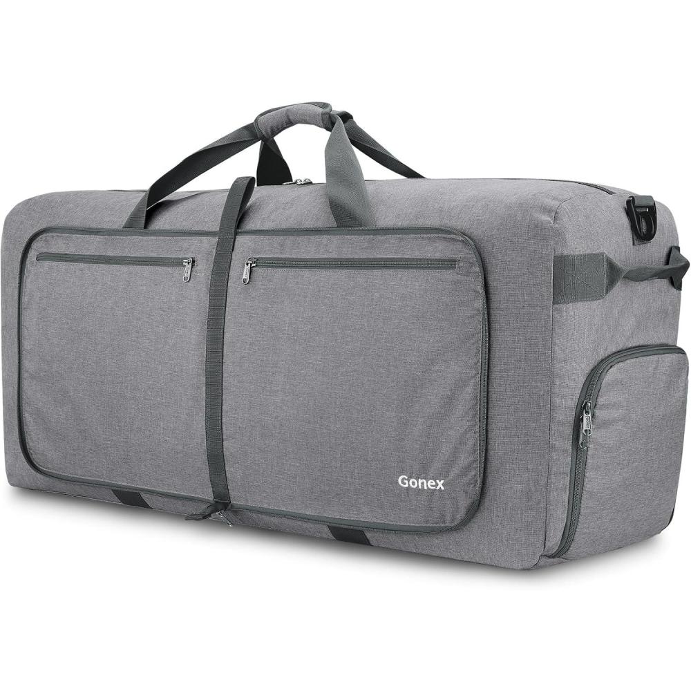 Gonex 40L 60L 80L 100L 150L Large Foldable Travel Duffle Bag with Shoes Compartment, Packable Lightweight Water Repellent Duffel Bag for Camping Gym Weekender Bag(Light Grey)