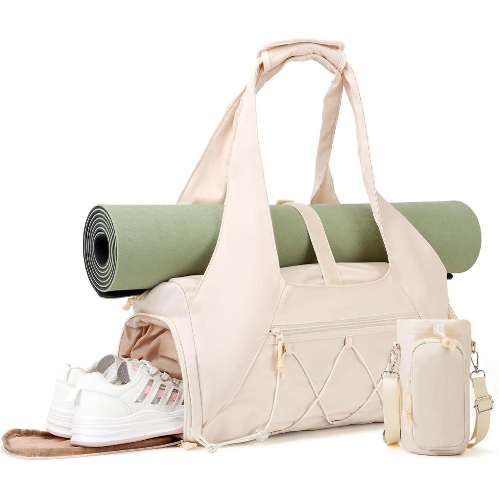 Gym Bag for Women, Yoga Mat Bag with Shoe Compartment and Wet Pocket, Sport Yoga Gym Bag with Yoga Strap, Carryall Yoga Tote Bag(Beige)
