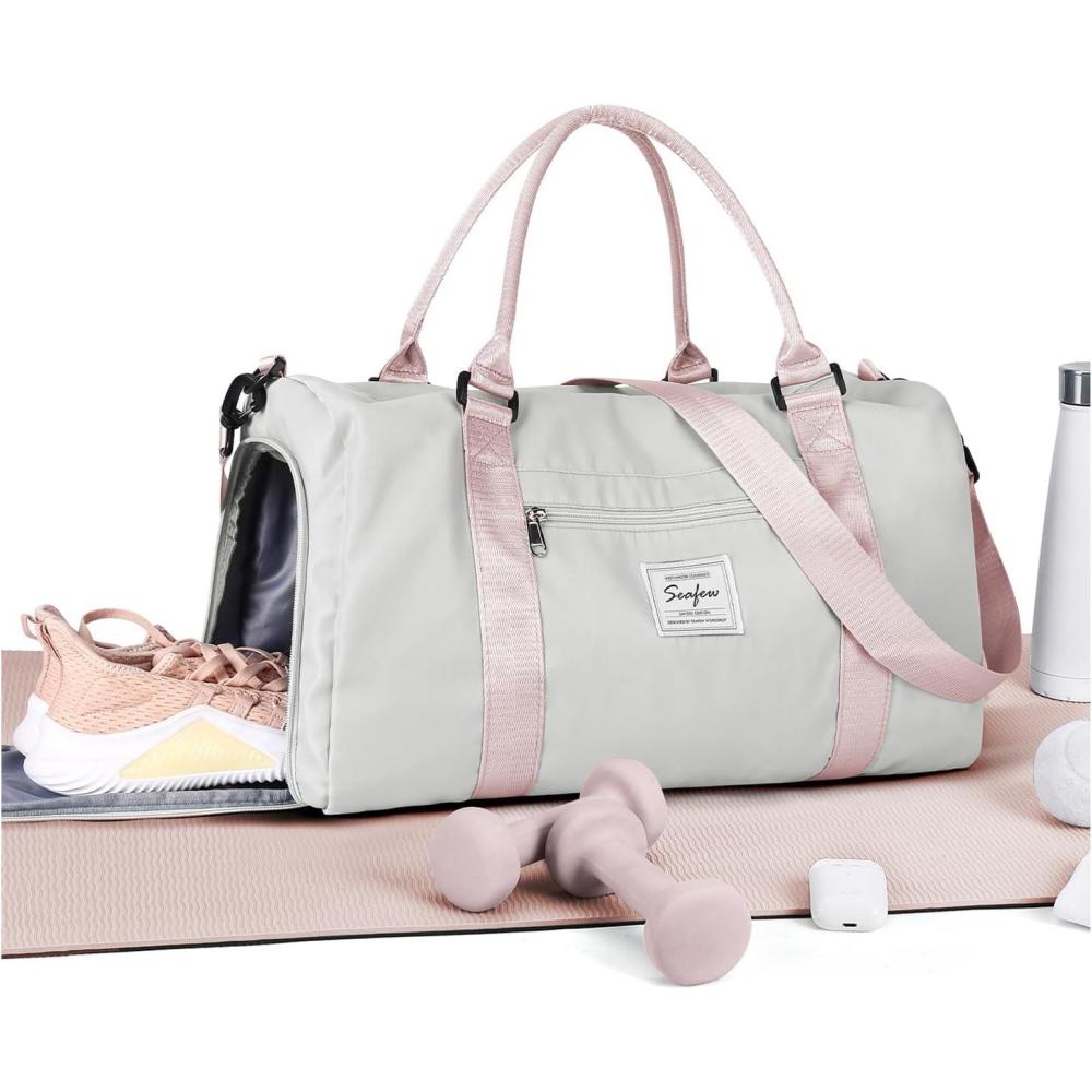 Gym Bag Womens,Travel Duffel Carry on Bag Sport Tote Bag Weekend Overnight Bag(A6-Grey Pink)