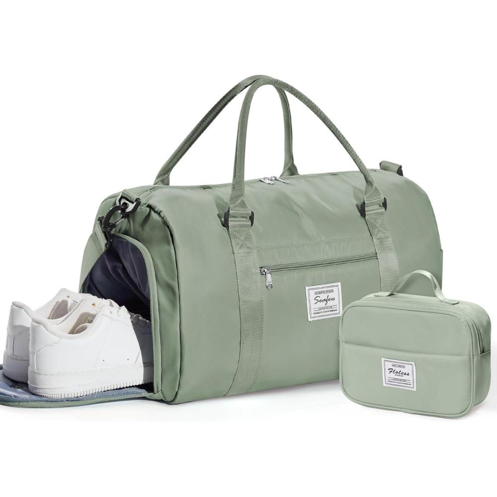 Gym Bag Womens,Travel Duffel Carry on Bag Sport Tote Bag Weekend Overnight Bag(B2-Grey Green(With Toiletry Bag))
