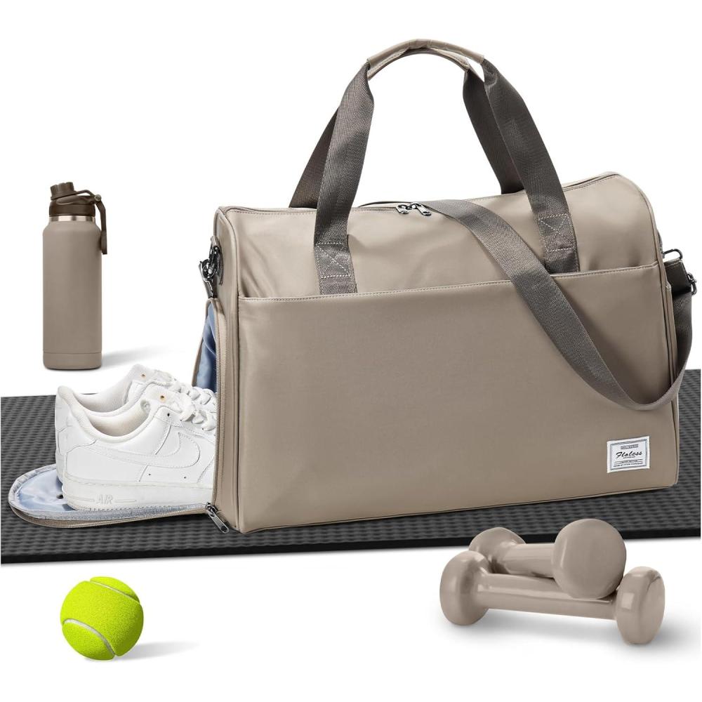 Gym Bag Womens,Travel Duffel Carry on Bag Sport Tote Bag Weekend Overnight Bag(K2Khaki)