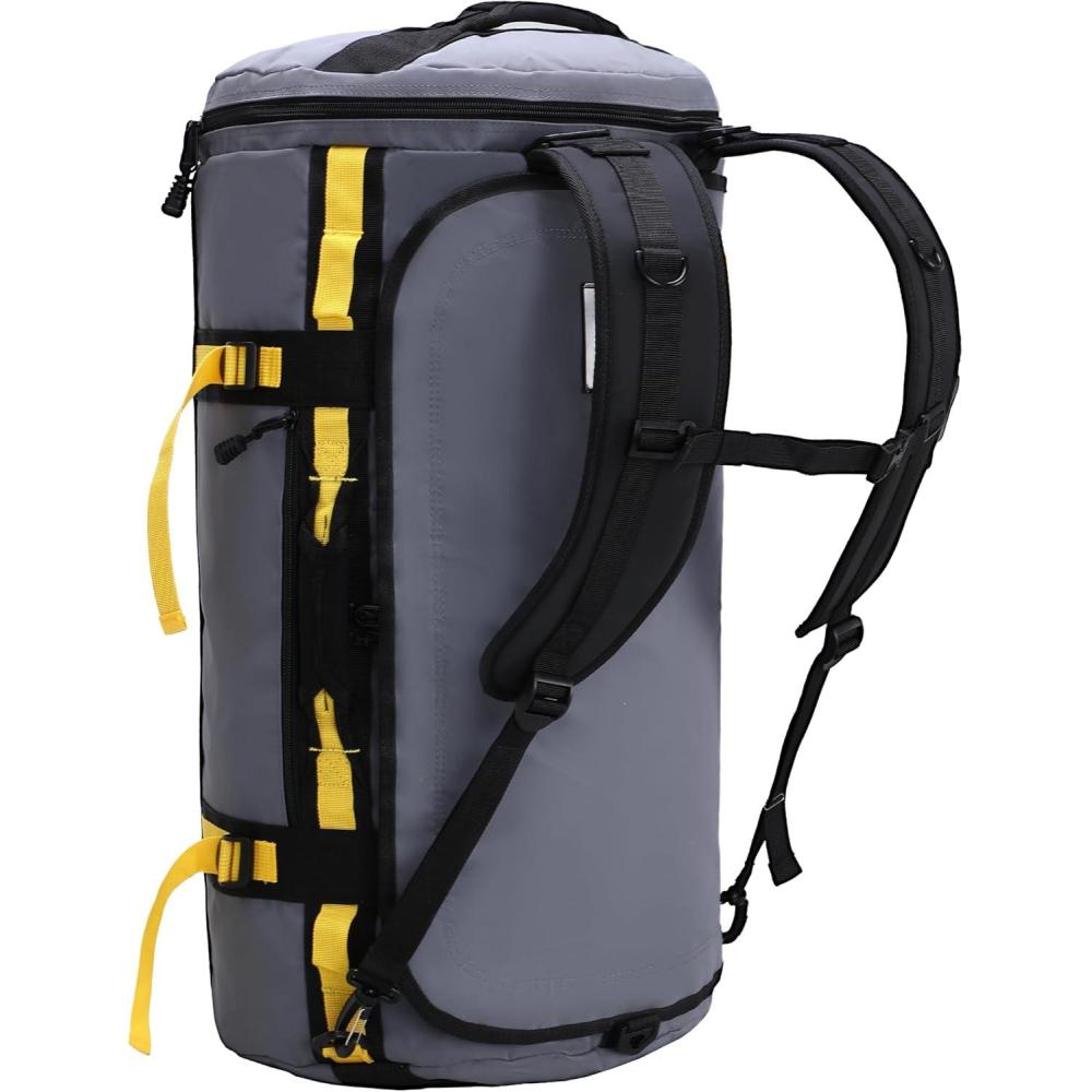 Water Resistant Duffel — Made of heavy-duty tear and water-resistant 500D Tarpaulin material and reinforced double layered tear-resistant floor panel, designed for harsh environments and features huge capacity to hold your workout gear or your trip stuffs