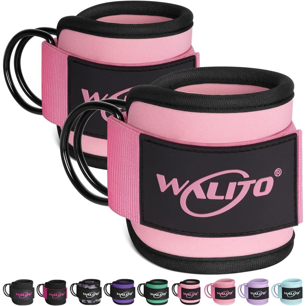 WALITO Gym Ankle Straps for Cable Machines Women & Men – Glute Kickback Ankle Cuff, Adjustable Cable Machine Accessories for Leg Extensions, Hip Abductors & Lower Body Workouts(Pair – Black Pink)