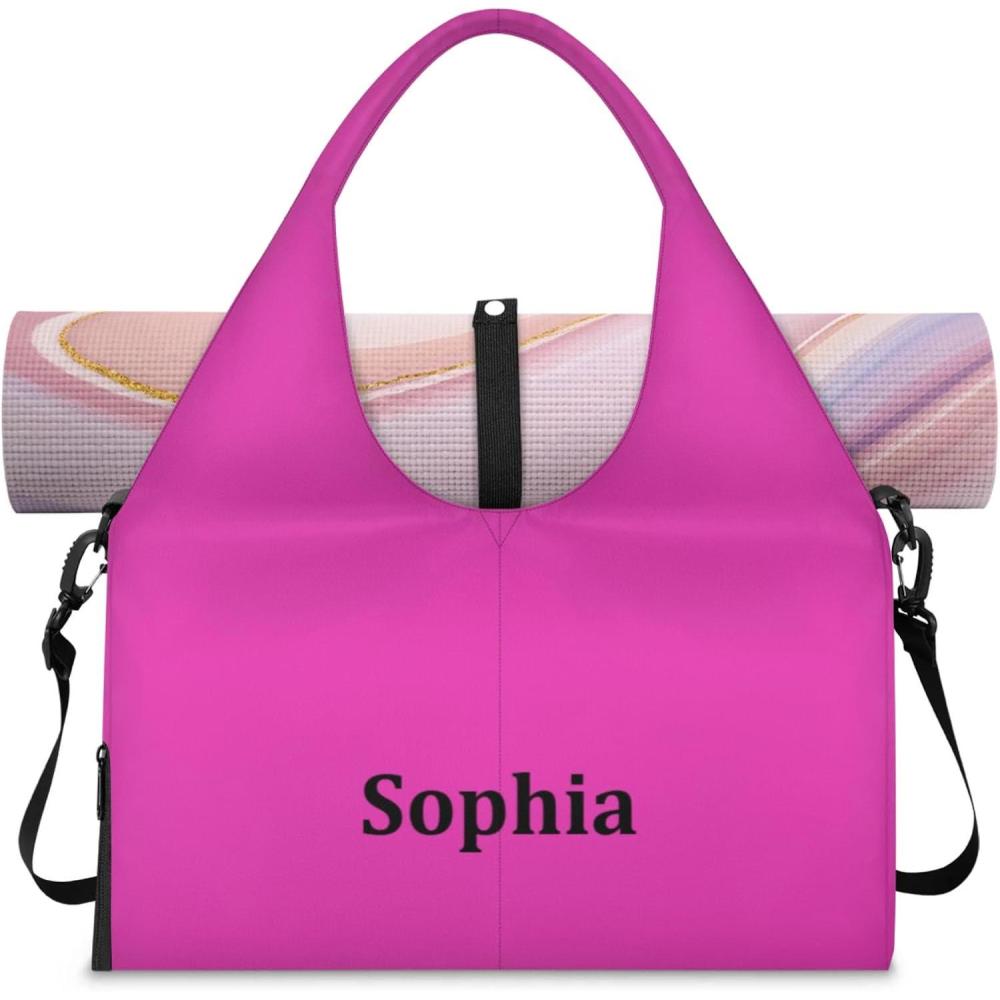 Yoga-Bag Small-Gym-Bag for Women Personalized Beige Yoga-Mat-Bag with Shoe Compartment Gym Accessories for Women(Hot Pink)