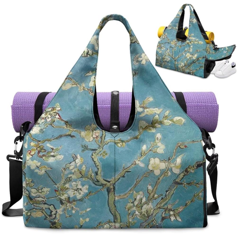 Yoga Gym Bag with Removable Adjustable Shoulder Strap, Shoe Compartment & Top Yoga Mat Holder 17.72×8.66×9.84in(Almond Blossom Tree Print)