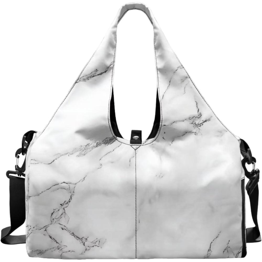 Yoga Gym Bag with Removable Adjustable Shoulder Strap, Shoe Compartment & Top Yoga Mat Holder 17.72×8.66×9.84in(White Marble Textured Print)