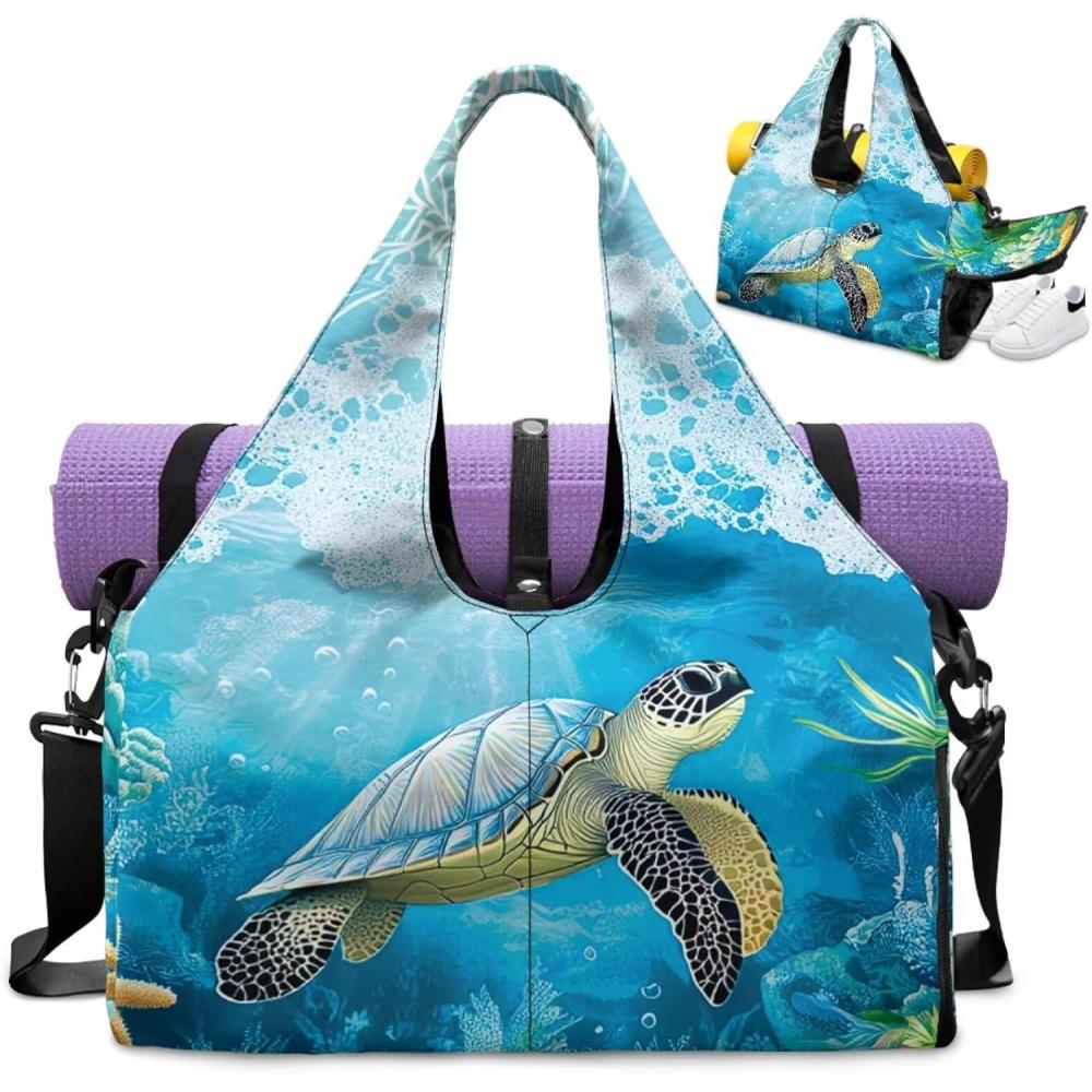 Yoga Mat Bag for Men Women Canvas Yoga Mat Carrier Take In Out Mat Easily for Beach Swim Bags Pool Sports Gym(Blue Sea Turtle)