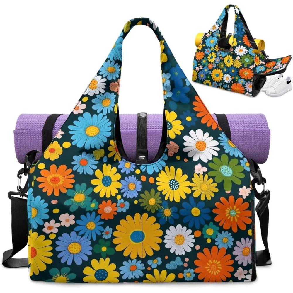 Yoga Mat Bag for Men Women Canvas Yoga Mat Carrier Take In Out Mat Easily for Beach Swim Bags Pool Sports Gym(Cute Daisy)