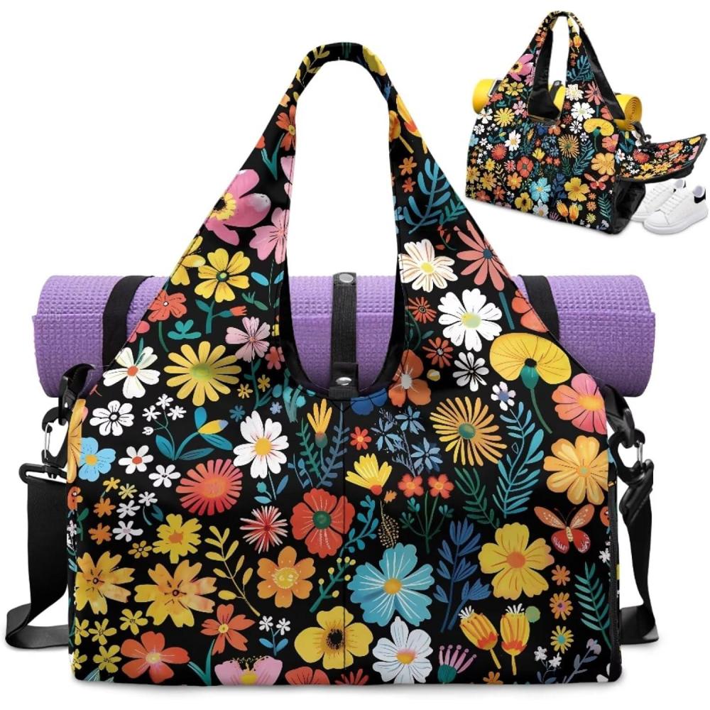 Yoga Mat Bag for Men Women Canvas Yoga Mat Carrier Take In Out Mat Easily for Beach Swim Bags Pool Sports Gym(Small Flower)
