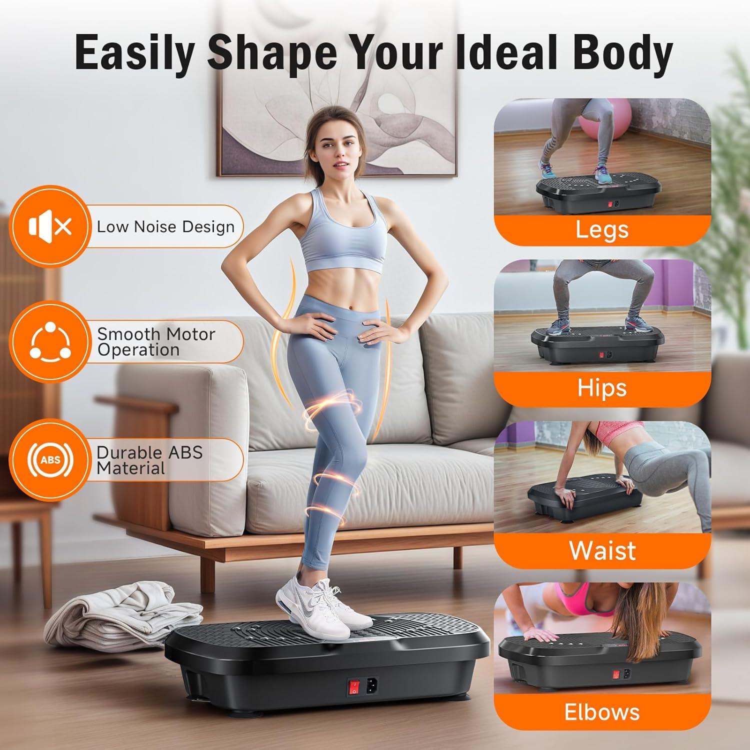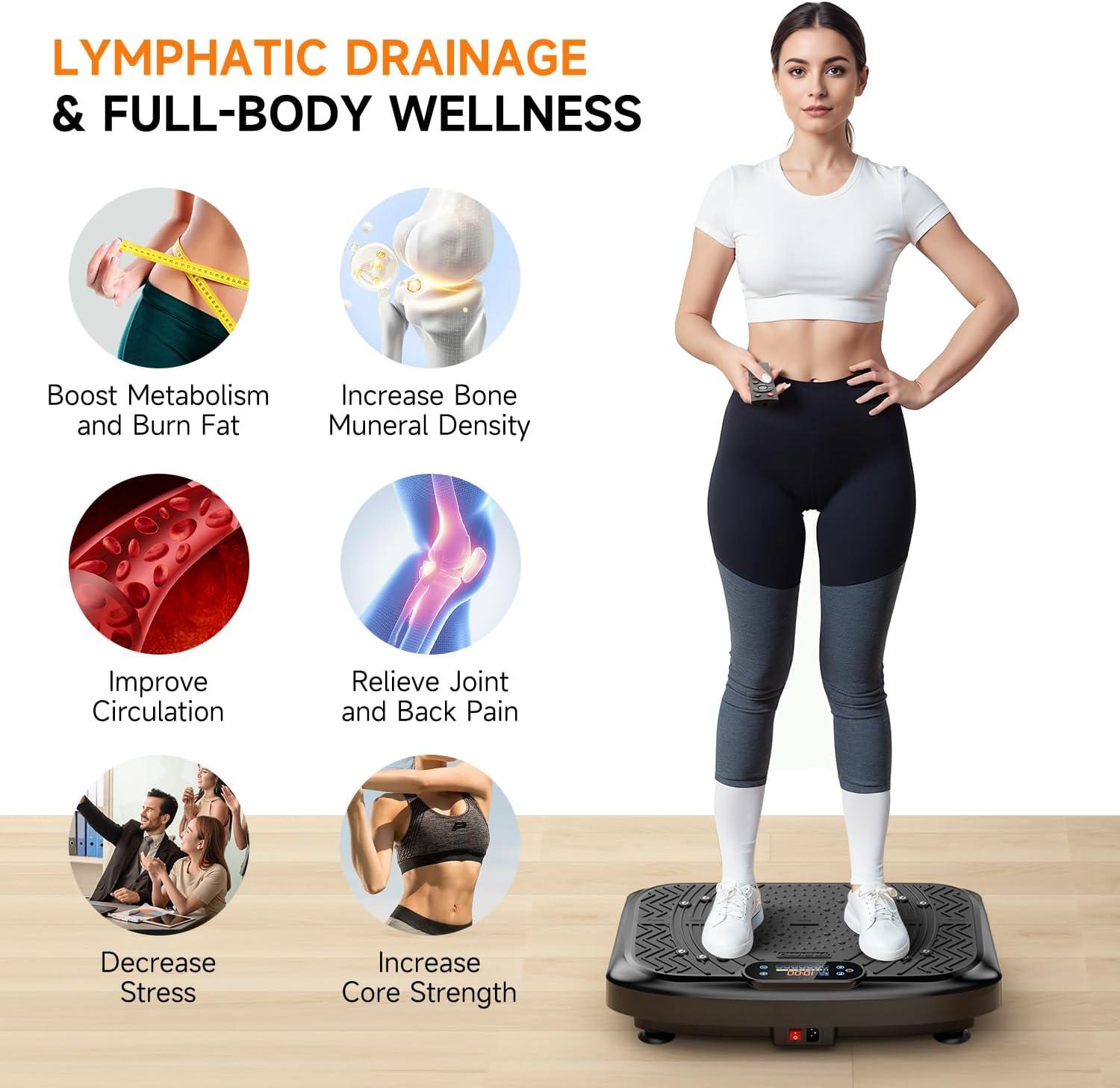 Vibration Plate Exercise Machine – Whole Body Workout Vibration Platform Lymphatic Drainage Machine for Weight Loss Home Fitness with Resistance Bands Remote(Flat-Black)
