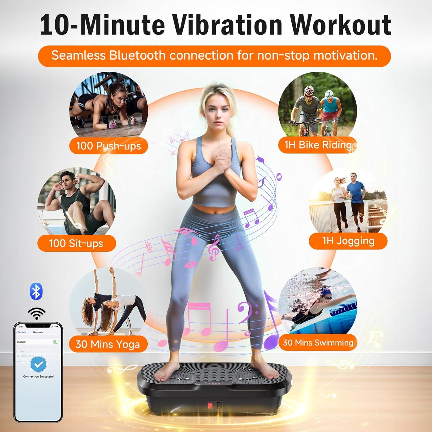 Vibration Plate Exercise Machine, Vibrating Plate for Lymphatic Drainage with 240 Adjustable Speeds, Full Body Vibration Plate Fitness Platform for Weight Loss, Bluetooth Music, Women and Men